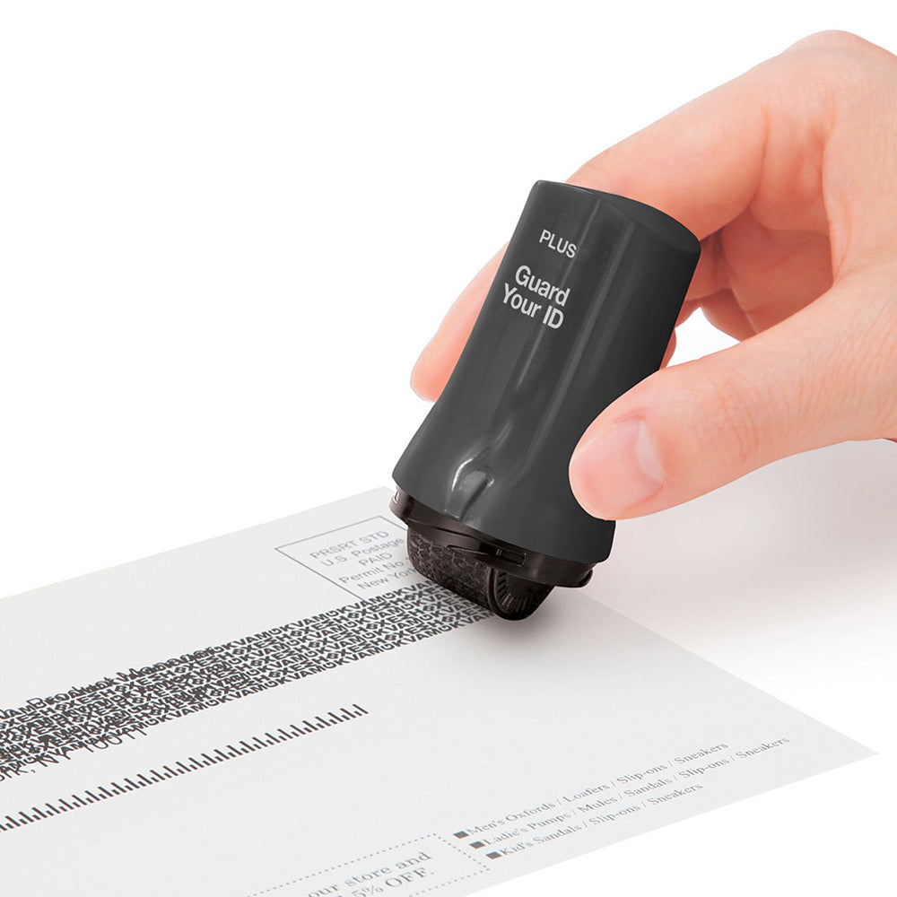 Twist off the cap and roll the stamp over the text you want to mask before discarding documents.