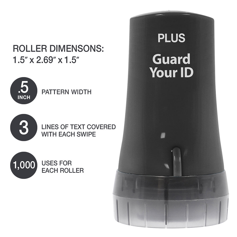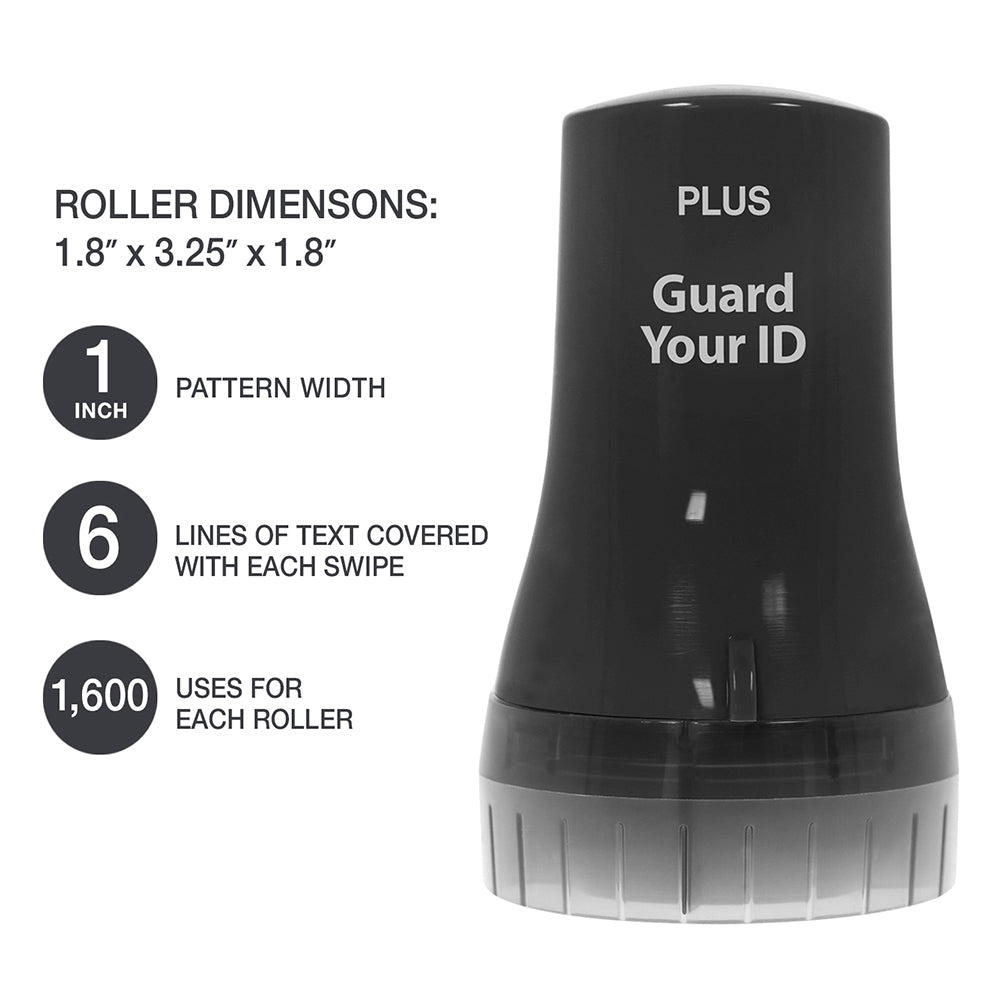 - Rollers use a unique stamp pattern designed to hide the personal text underneath.