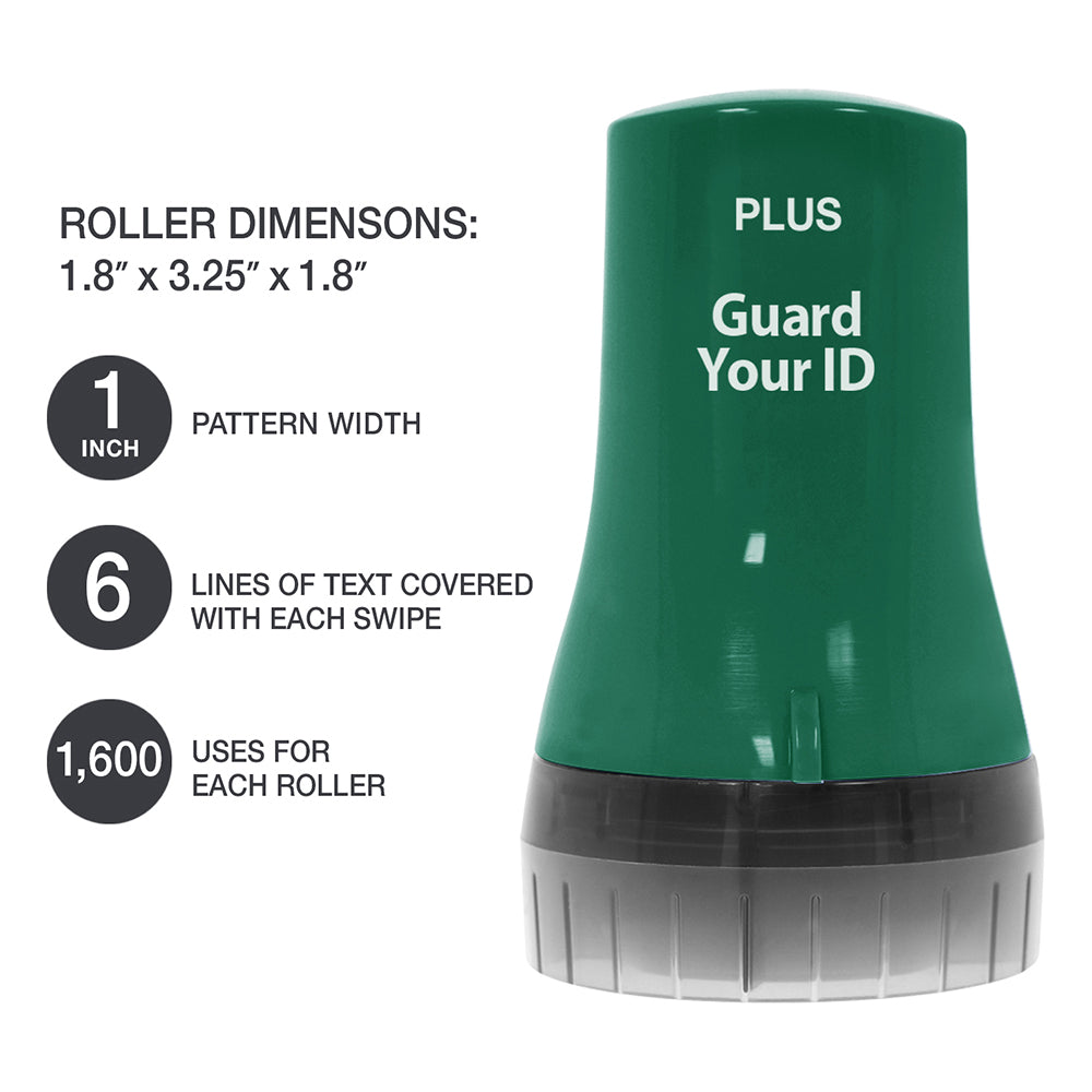 - Rollers use a unique stamp pattern designed to hide the personal text underneath.