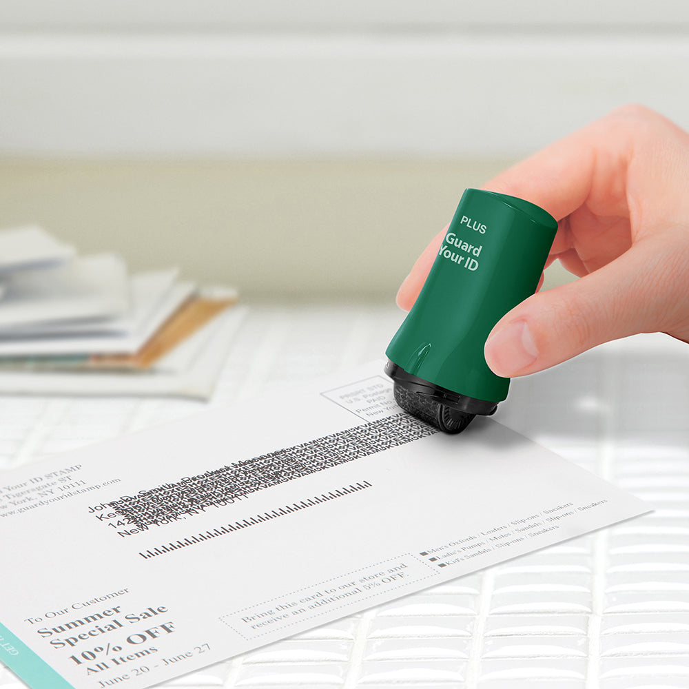 Twist off the cap and roll the stamp over the text you want to mask before discarding documents.