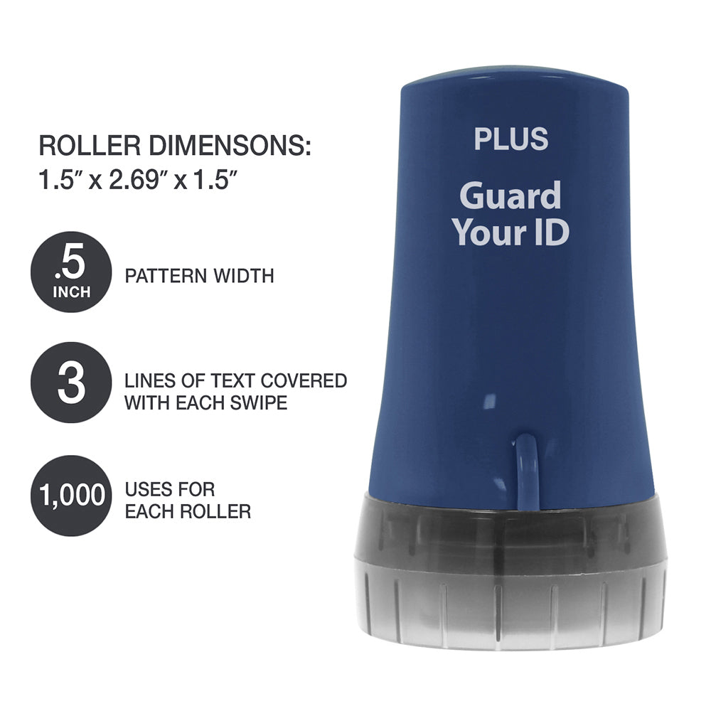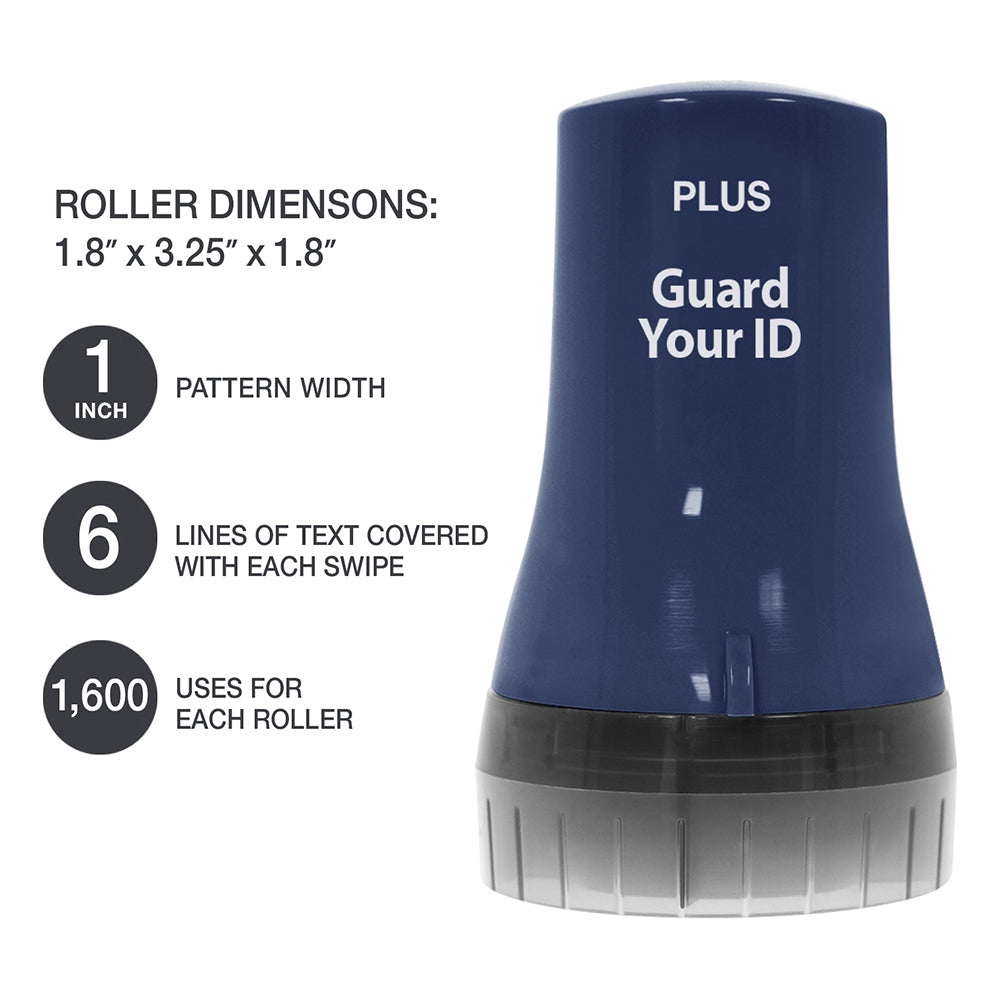 - Rollers use a unique stamp pattern designed to hide the personal text underneath.
