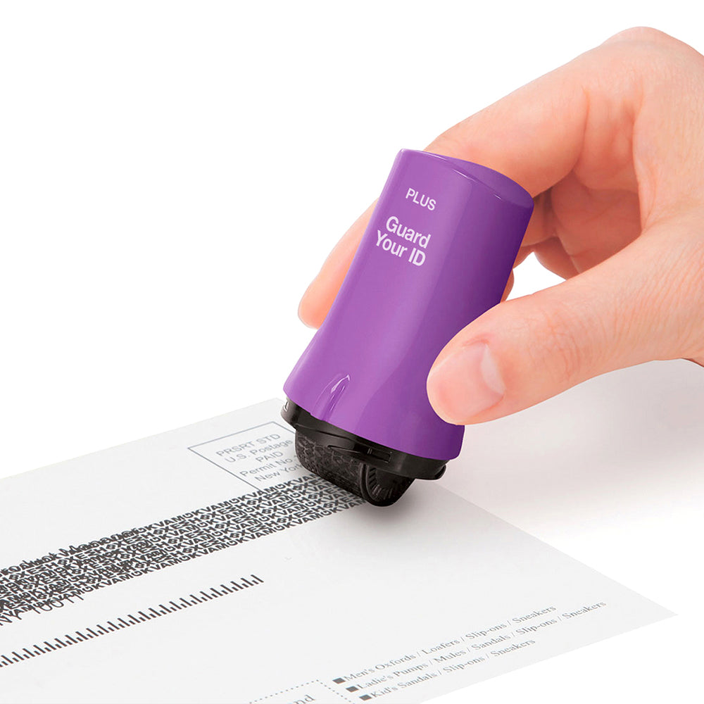 Twist off the cap and roll the stamp over the text you want to mask before discarding documents.