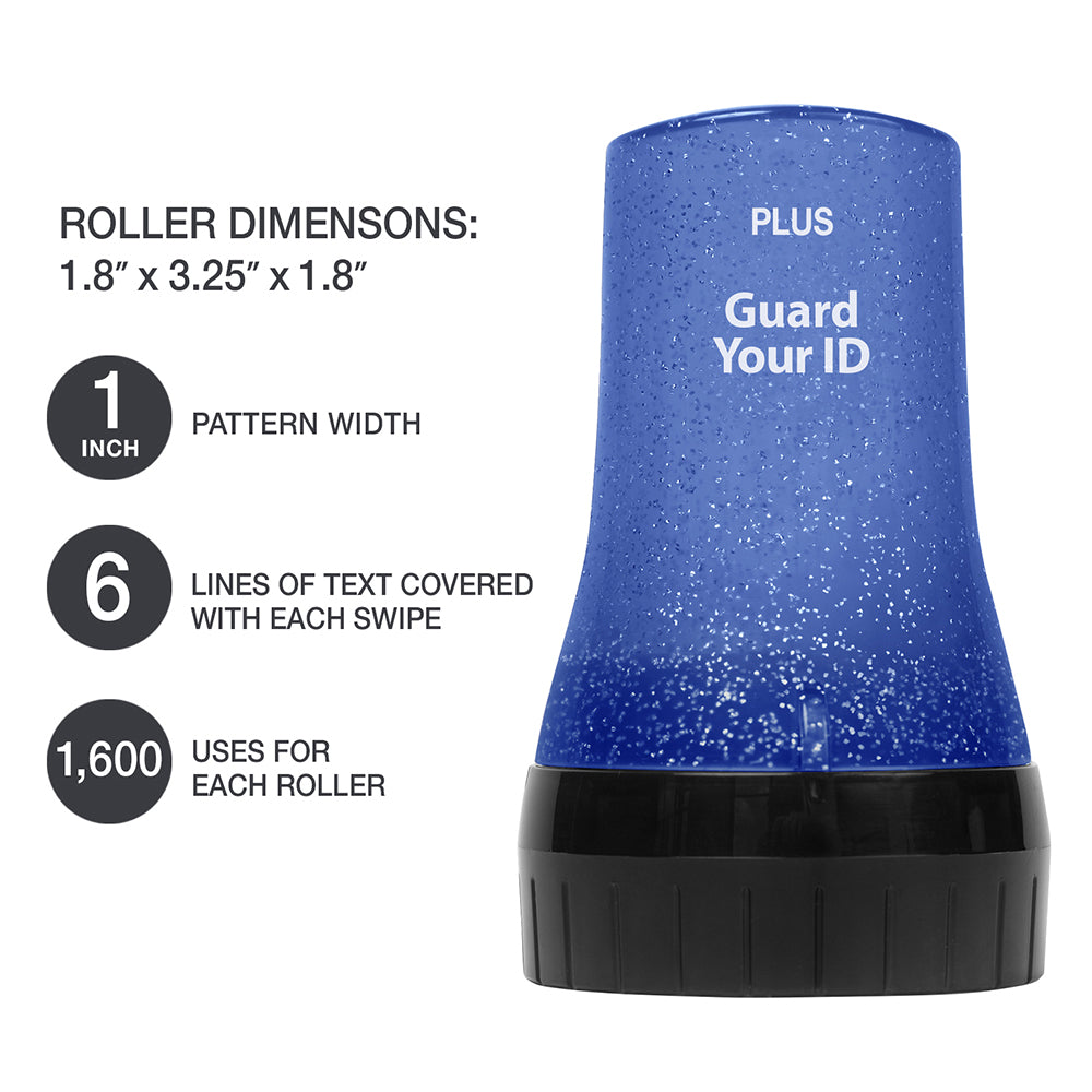 - Rollers use a unique stamp pattern designed to hide the personal text underneath.