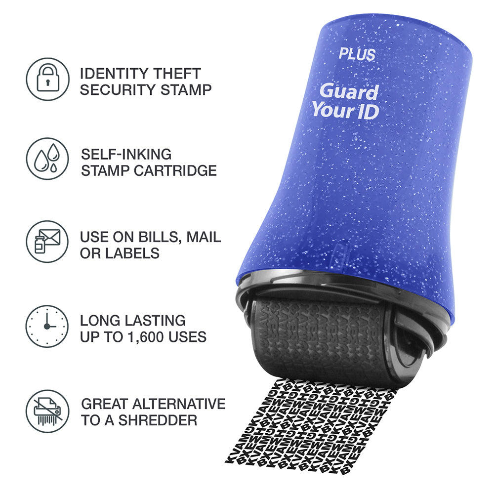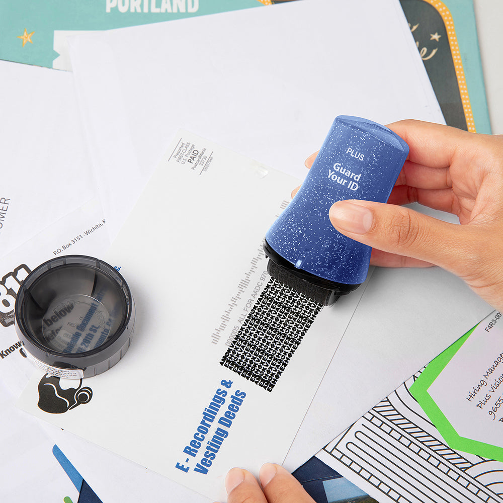 Simply roll the stamp over the text you want to mask before discarding or recycling documents.